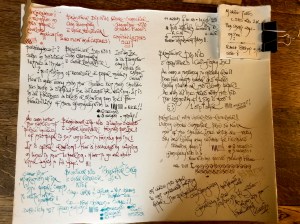 Simple meanderings using the Brandauer dip nib with various inks. Have put a small Mitchell ink reservoir on the underside of the nib. The nib is a ’Fude’ nib. Upturn at the nib end. One immersion into each ink produces a nice elongated writing experience.