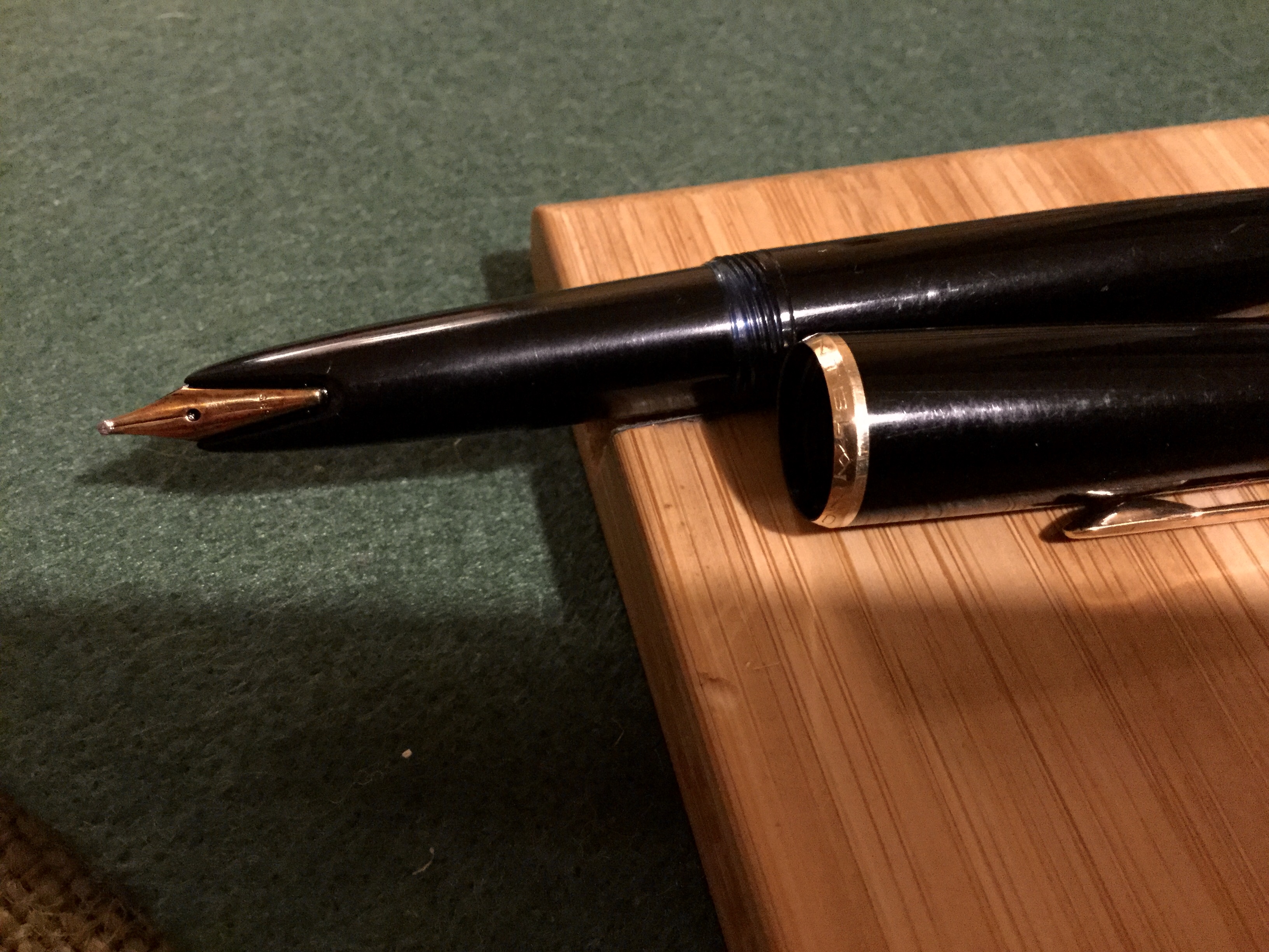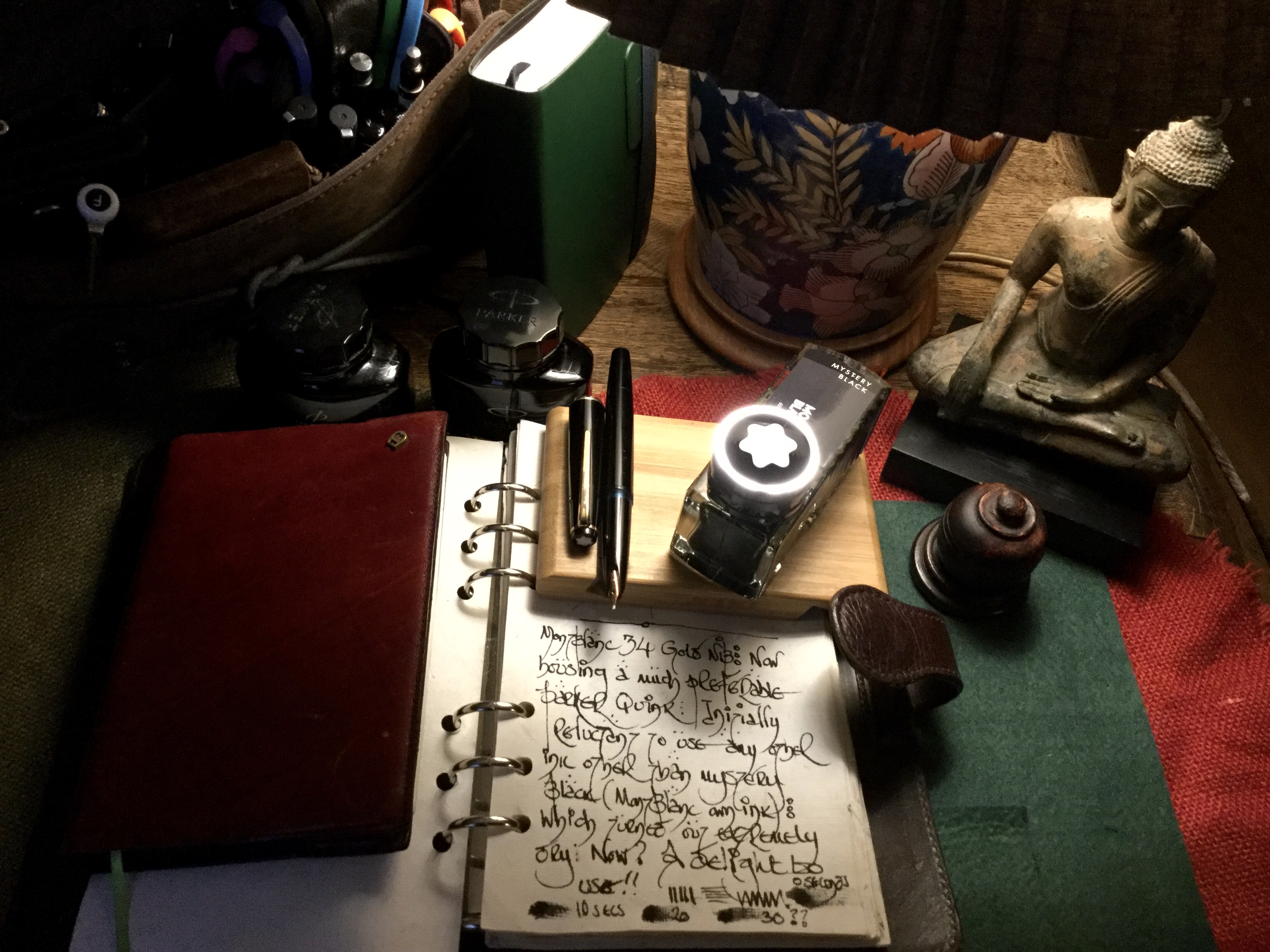 Montblanc #34 Fountain Pen. First loaded with Montblanc Mystery Black ink. Now loaded with Parker Quink.