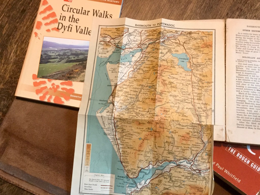 The upshot of the story was that positivity was found in seeking out these books when home. Especially that vintage published in 1939 Barmouth and North Wales (Southern Section) book with it’s unique language (and odour!), fantastic pages on pages of old advertisements with illustrations and fabulous old maps throughout. Knew I would have to hunt it down. Opened the door to ‘under the stairs’ looked straight ahead at eye level and the spine of said book looked back at me! Next to it on the right were the others. The heavens were in alignment it seemed. Something to be said about a Virgo organisational mind set. Collective books in their own collective space. Now I can look at reference material to actually add within the spoken experience from the perspectives of a beautiful old book with it’s own unique linguistics! And how times have changed since it’s publication.
