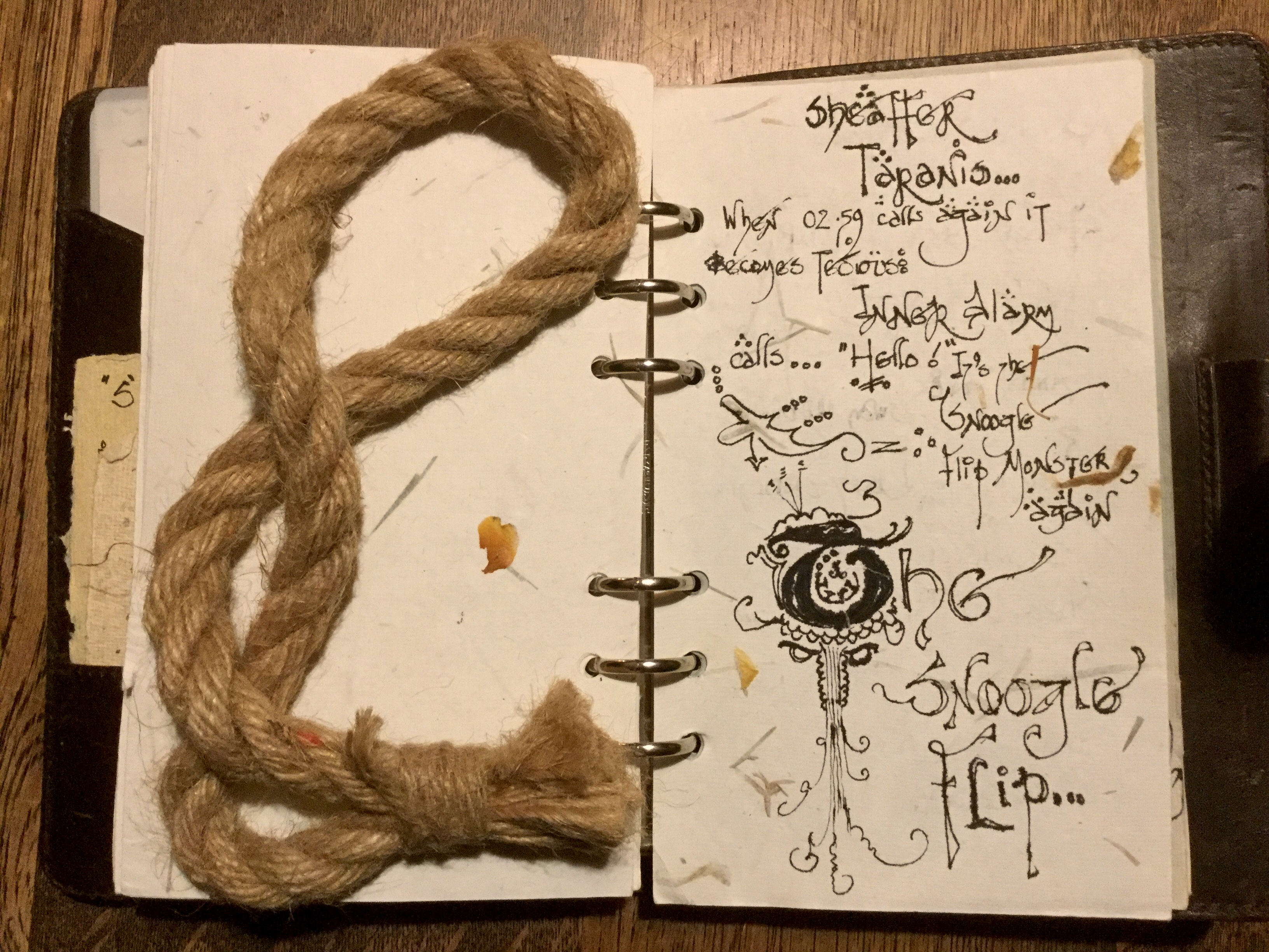 ‘Your Snoogle state of comfort in dreamland oblivion has been flipped’ Sheaffer states. ‘It’s becoming an out of control monster. Let’s write it out, ride it out and expel it from your sleep brain. If you can see it face to face……you can close the book cover, tether it up safely and let the ‘worry hawser’ whisper it’s own chosen spells from past Summers’ ‘worrisome thoughts into hemp exchanges’ and banish it to this soon to be dark room. Flip the light switch and back to bed’.