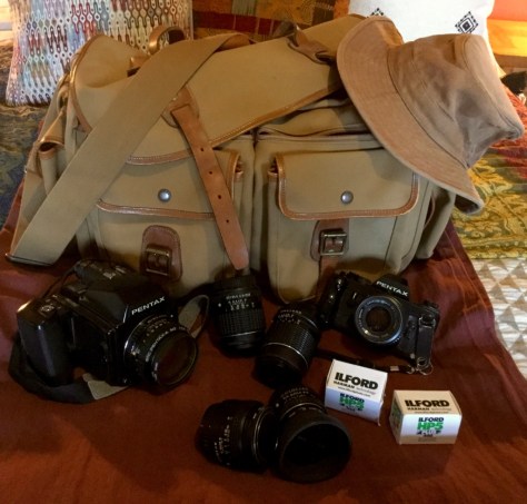 The Billingham 550 camera bag is sturdy and reliable. It also has an amazing design. Mind you. This is a large bag and houses 3 SLR Pentax cameras and the Pentax 645 medium format camera too. Also inherent? The filters, light meters, film, sandwiches, flask, etc. This ends up being impractical re: weight. So it doesn’t get taken out into the ‘field’ often and so retains it’s newness. Trouble is, I want it to look travel worn and beaten up by the weather. A few scuffs and battle weariness about it’s character.