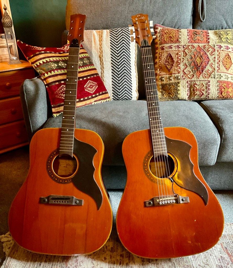 Can’t beat a USA 1970s built Shure SM58 for recording Sheila. The Eko guitars were used by a few famous musicians back in the 1970s. I know Jimmy Paige was one. BTW…Led Zeppelin recorded one of their early albums up the road from our village. Robert Plant still lives in the area too. Visits every so often it seems. I nursed one of his neighbours. He spoke very highly of Robert. Such an amazing human being he said. Spotted around town by many. Unluckily, not by myself as yet. ☹️