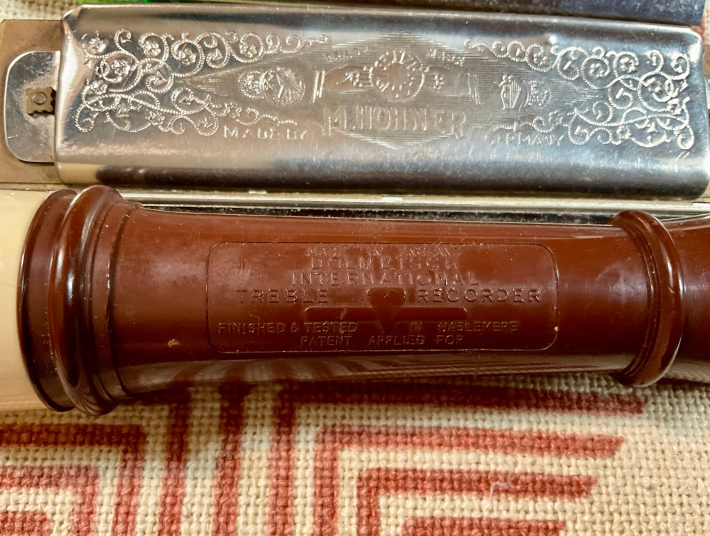 All these vintage bought instruments that are unused and unloved souls? I remembered the vintage recorder I bought a few weeks ago down in Devon, England. Again, school days memories. I have five recorders now. Some penny whistles too.
