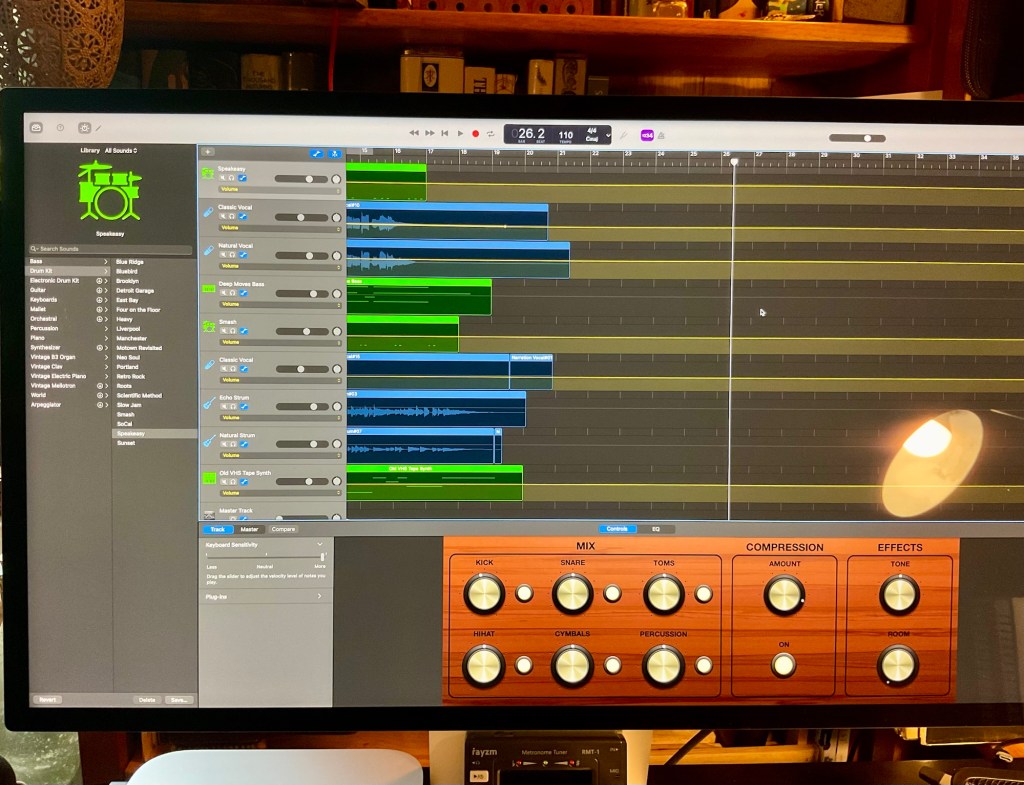 Even though GarageBand isn’t AI at the level we believe it can achieve now. It still has to have tactile skills. It gives opportunity to replace a real brass TRUMPET with a synthetic trumpet. Breath control into the mouthpiece and three fingers in action for hitting multiple notes is far above the skills of me pressing a keyboard note to produce a brass ensemble. This is why I really don’t want to go down the rabbit hole of what the Apple Mac home recording system and the GarageBand or Logic Pro apps can offer. I am using what it offers to get insights as to what songs could sound like. But recording real musicians is where it can really capture decent sound results.