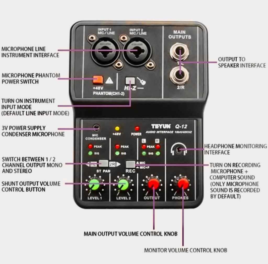 5). XTUGA USB Audio Interface for PC,Interface for Recording Music Computer Recording Audio Interface XLR with 3.55m Microphone Jack, USB Sound Card for Recording Studio, Ultra-low Latency Plug&Play, Q-12