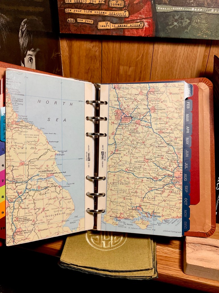 So, due to its rarity status, it got me thinking. Why not put a vintage and equally as rare Filofax diary inside! So, I thought ‘Aaaaah! My Filofax OC7/8’. I saw my Filofax once on the internet at £180. Shockingly expensive. I paid 50p from a charity shop. You can’t do that nowadays. Charity shops have internet sites now with rare items. Anyways…I can buy a new diary cheap insert again. One with half a week’s view in a tiny 9.5 x 17 cm space. ‘Perfick’ as Pop Larkin would say. ‘Life’s Perfick wherever you go’. The small little daily space can have Porridge, Cheddar Cheese and Branson Pickle Sandwich in it all year long.