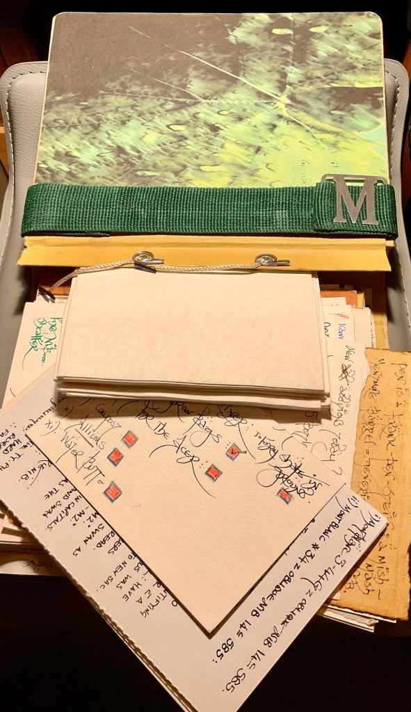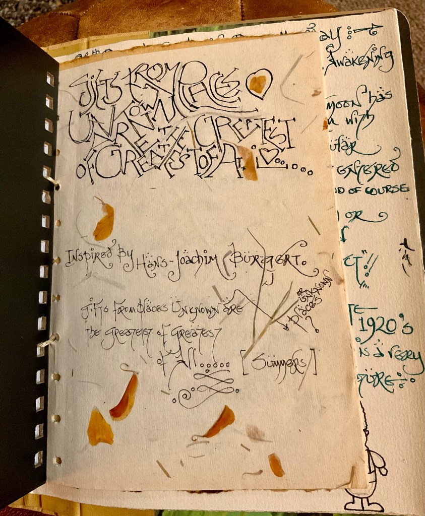 Many of my bought journals, notebooks, etc. have been blank for a fair few number of years now. So maybe loose paper with these covers is more practical. My saving grace is that I hand a fair few of the bought stationery to my granddaughter who fills them all very quickly. She loves to simply fill blank pages with all types of artistry or words. Must be from her Mum (my daughter). She was the same when growing up. My daughter’s writing has a unique flow exhibiting a unique beauty and magical shape. It got me thinking to how we change our writing style as we become more confident in our word expression. I have my brother’s books of lyrics and poems he wrote. Kev’s writing style was totally ’out of the ordinary’. Very Bolanesque in it’s flamboyant quirky nature. An art form all on it’s own. Words apart. He died when 21 so it is a precious and valuable memory keepsake. And so this ability to put down written words and record in our own unique hand writing styles got me thinking.