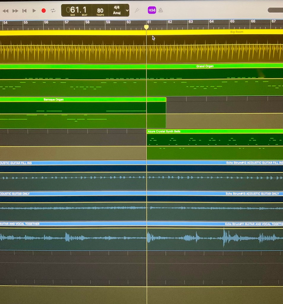 Today I began by loading up the 18 years was 50 years ago song. There are seven individual tracks played on. A need to muck about with tentatively bringing an improved brightness to the overall sound was the intention.