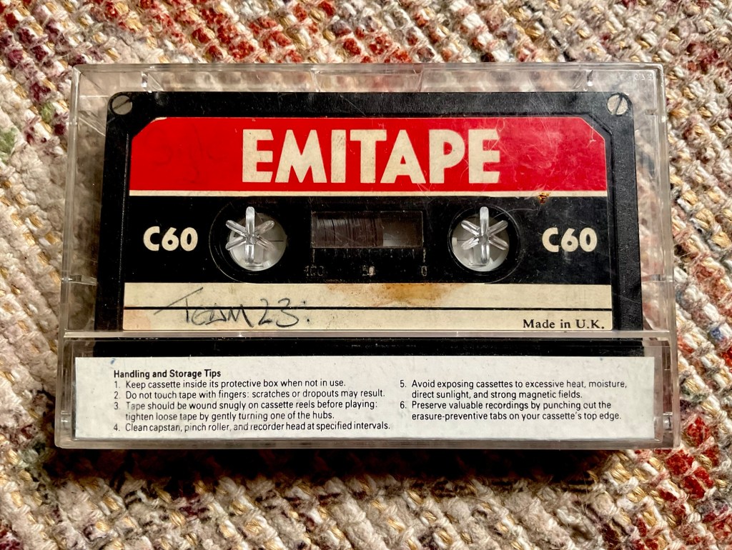 And so. Returning to the blog’s intent. Within this wine box? There exists wonderful memories. The songs from those heady days of the past are on very fragile tape cassettes (here in the photographs). They hold stand alone individual pieces of us all, in our various guises of the bands mentioned above, and inherently represent, in sound form, our past life’s contributions. Soft Ground, The Monitors live at the Dive, The XCerts, Team 23, Steve’s band ‘Alibi’ and Kev’s band after the XCerts split. A multiple contribution of us all as musicians, all playing our parts to realise hoped for positive outcomes. None of our bands ever came to be successful internationally. Locally….yes. And two members of Team 23 went on to play in a band called King and enjoyed single, album and chart success. On reflection? We were blessed in being given that time of enjoying the precious moments we created and now owning the memories that followed.
