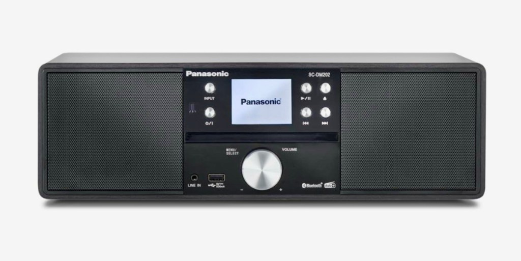 Panasonic SC-DM202EG-K Micro HiFi Compact Stereo System with FM / DAB+ Radio, 24W Output Power, CD/MP3 Player, USB, Bluetooth, Large 2.4″ Display, Black.