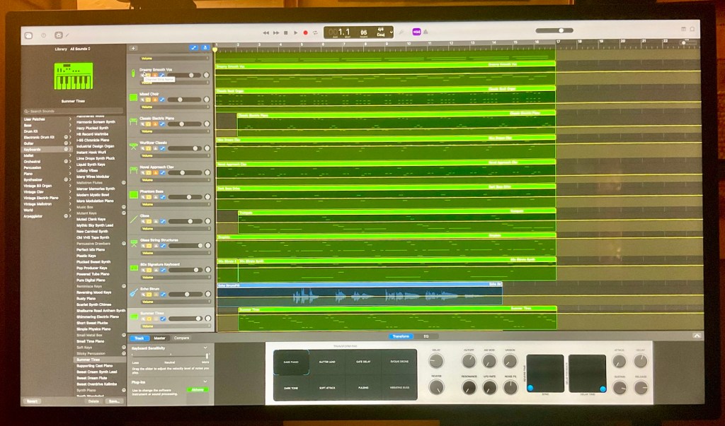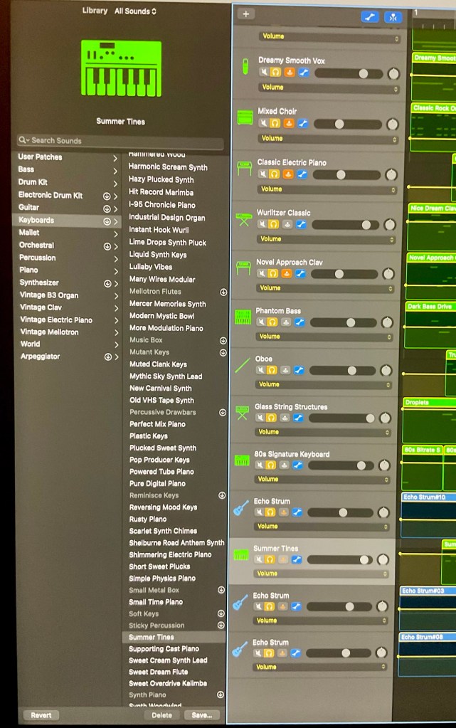 All the instruments (apart from the drums from the GarageBand library) and the vocals in the videos below are played and sung by myself…Gray Summers. Recorded on GarageBand with a Mac M2 computer, some guitars and an AKAI MIDI MPK Mini plus keyboard.