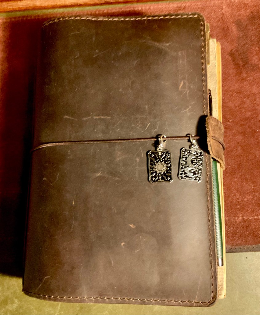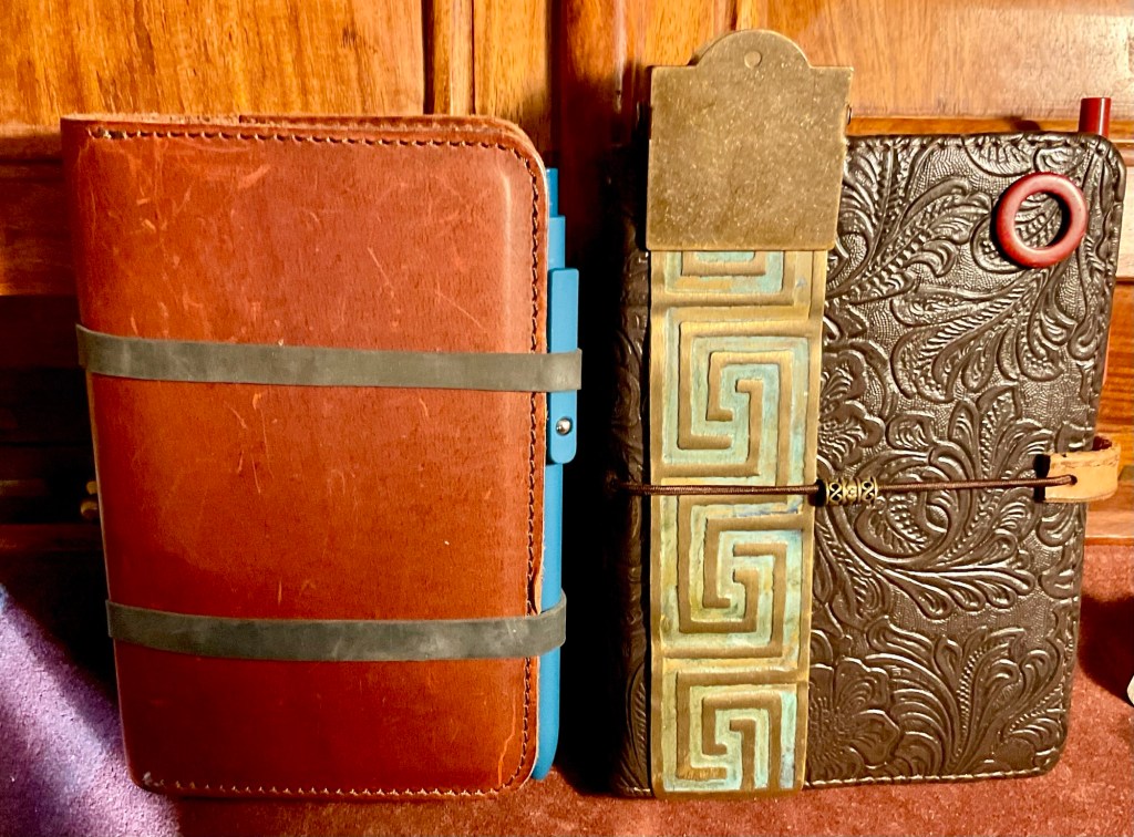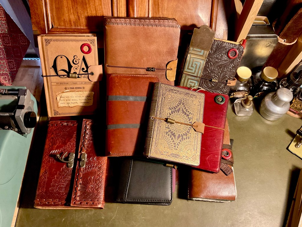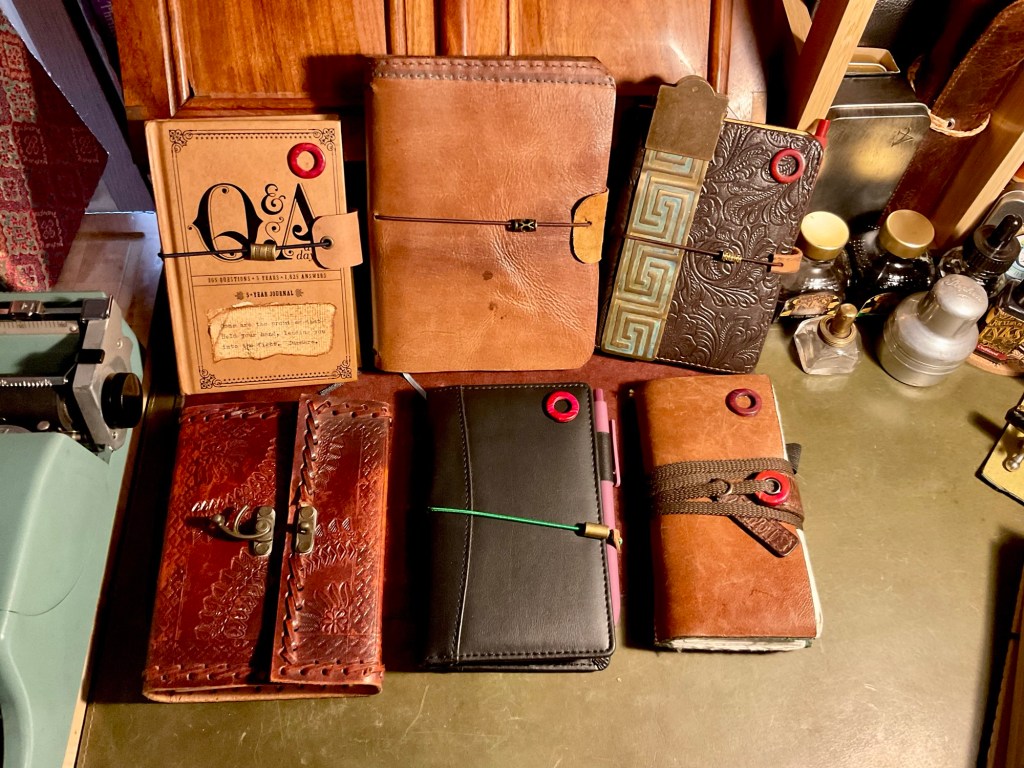 I have been making Traveller notebook covers recently. I have given a few away made from an old leather satchel I cut up and used. I have also been adapting old diaries and other books to convert into notebook covers. Currently, having received a metal eyelet/grommet kit, so that the holes that have the notebook retaining elastic running through them are being strengthened.