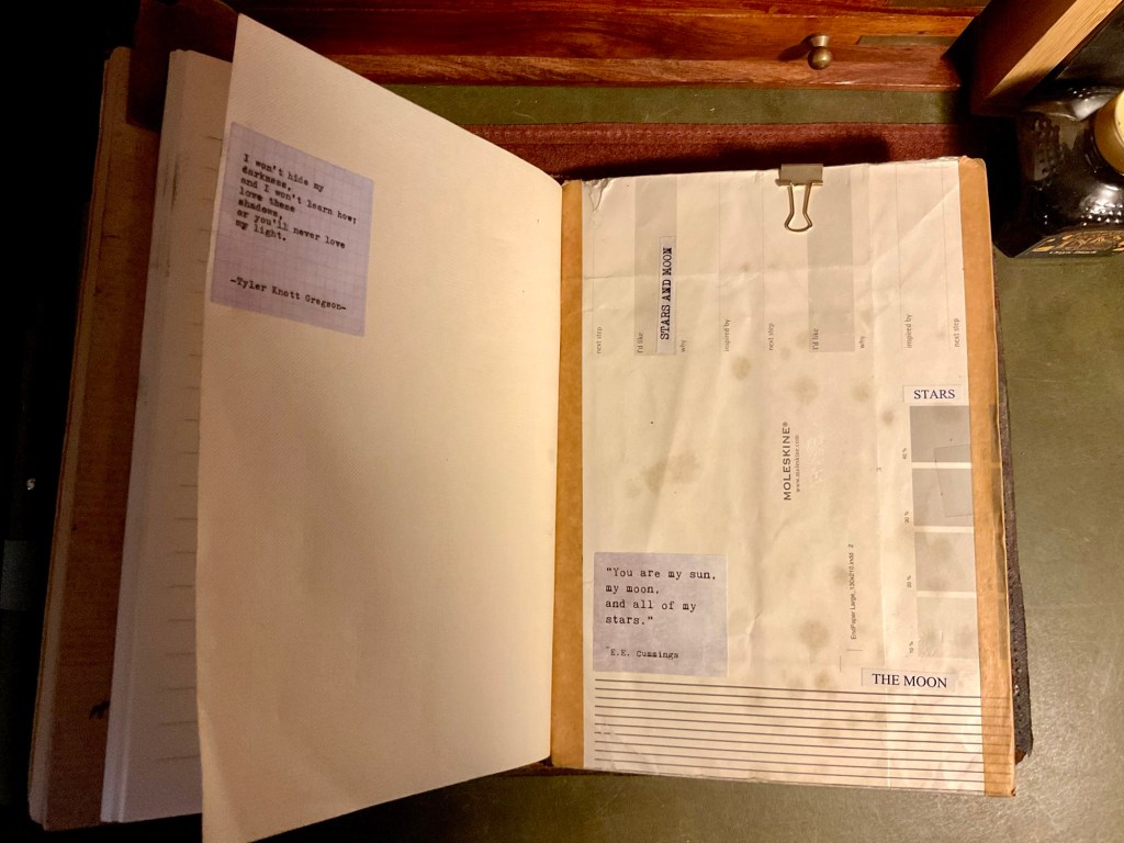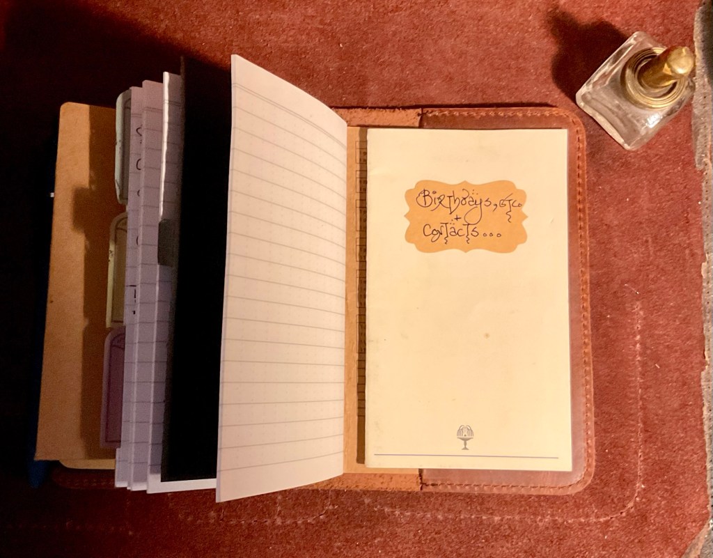 ‘How to approach recording daily to weekly to monthly to year by year information in my own handmade and bought notebooks/covers and change the confusion of what once was in order to make it simpler’.