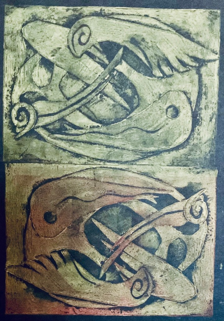 I made this piece of artwork below about 20 years ago. I kind of liked it enough to keep it. Actually framed it! This morning, I took a photograph of it, screen shot it seven times and shoved it through the iPad ‘Filter’ choices. Then? Took the ‘Lighten Up’ recording from last year and remixed it this afternoon to a brighter level.
