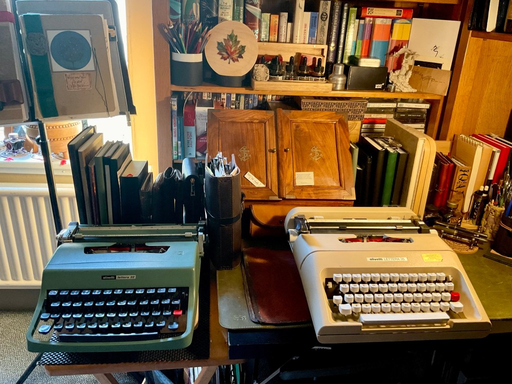 Other Therapy over the last few days? Doing some Grandparent duty on Wednesday. So my Grandson was with me all day. So we listened to some vinyl, eclectically. Also, he used the Olivetti Lettera 35 to continue writing his ‘novel’. Some cheap watercolour paint was taken from tubes and put into half pans for the pallette. Afterwards. A bit of gardening planting up cucumbers, french beans and peas.